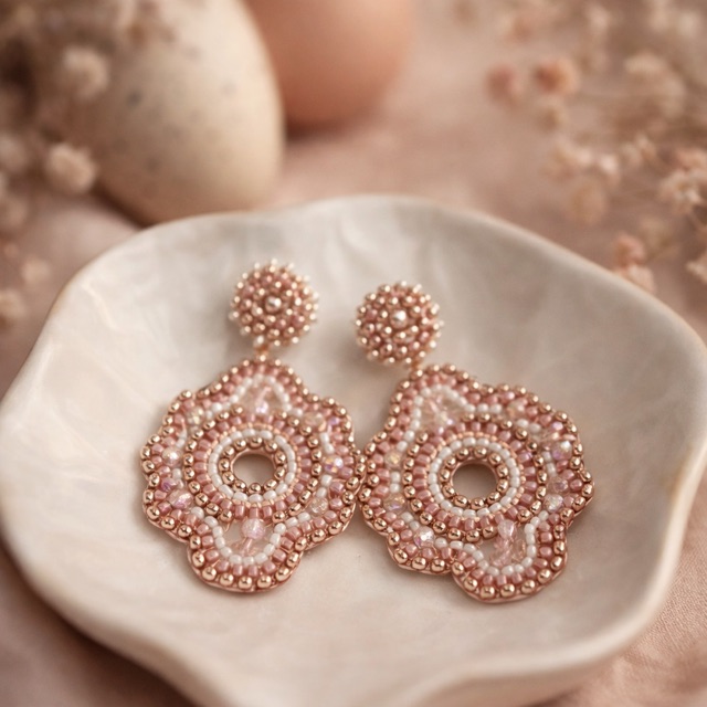 Exklusive, handgefertigte Perlenohrringe in Rosé mit edlen Akzenten – leicht, elegant und ein einzigartiges Statement.