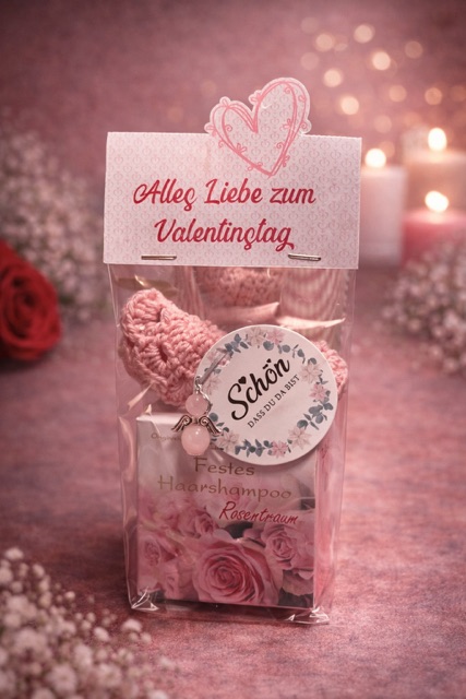 Ein liebevoll gestaltetes Geschenkset zum Valentinstag, das Herz und Sinne berührt.